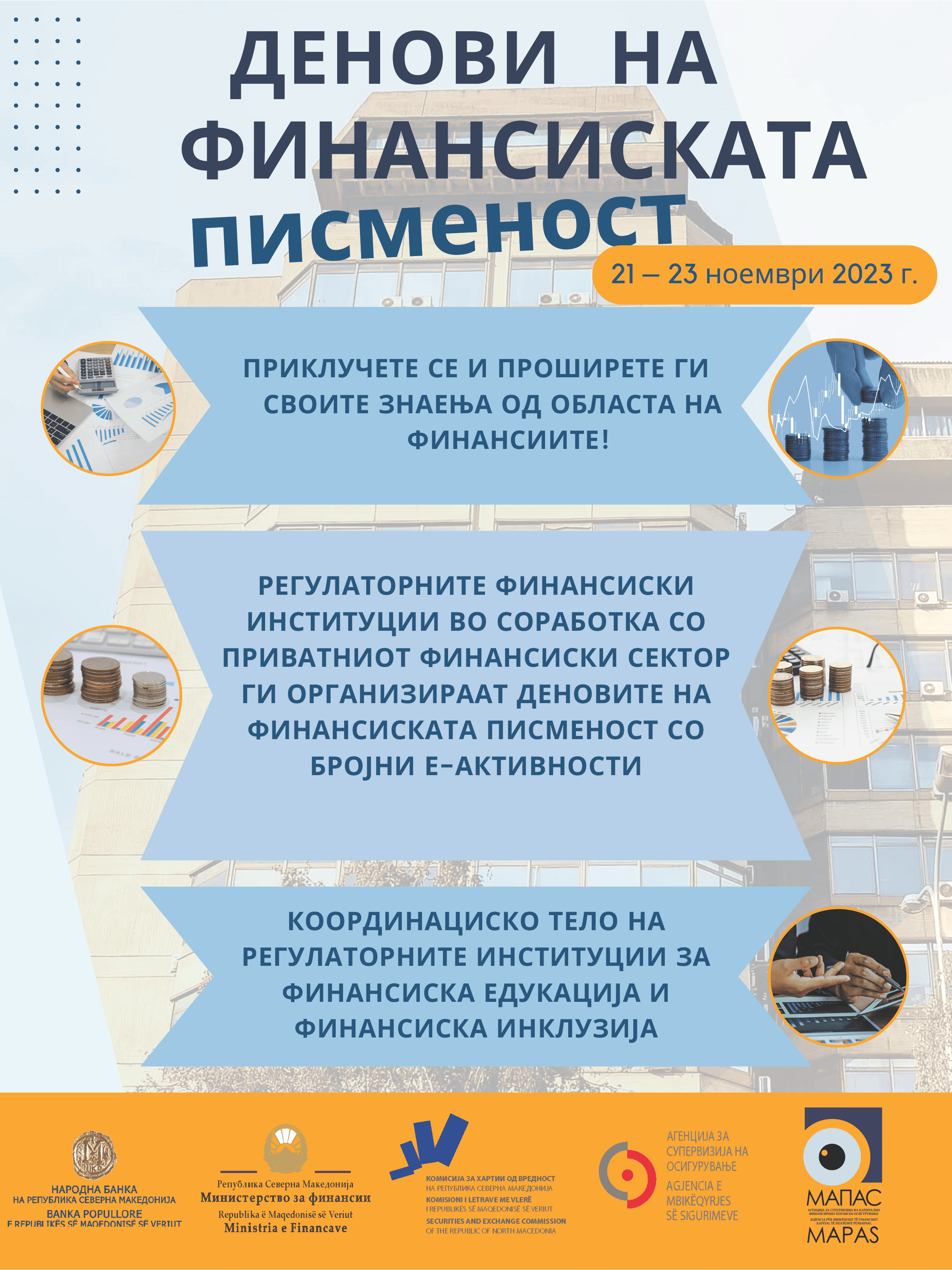 Деновите на финансиската писменост, коишто се организираат по седми пат, годинава ќе се одржат од 21 до 23 ноември.