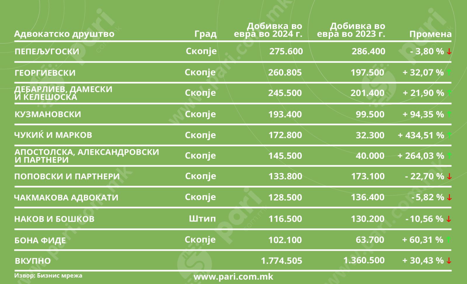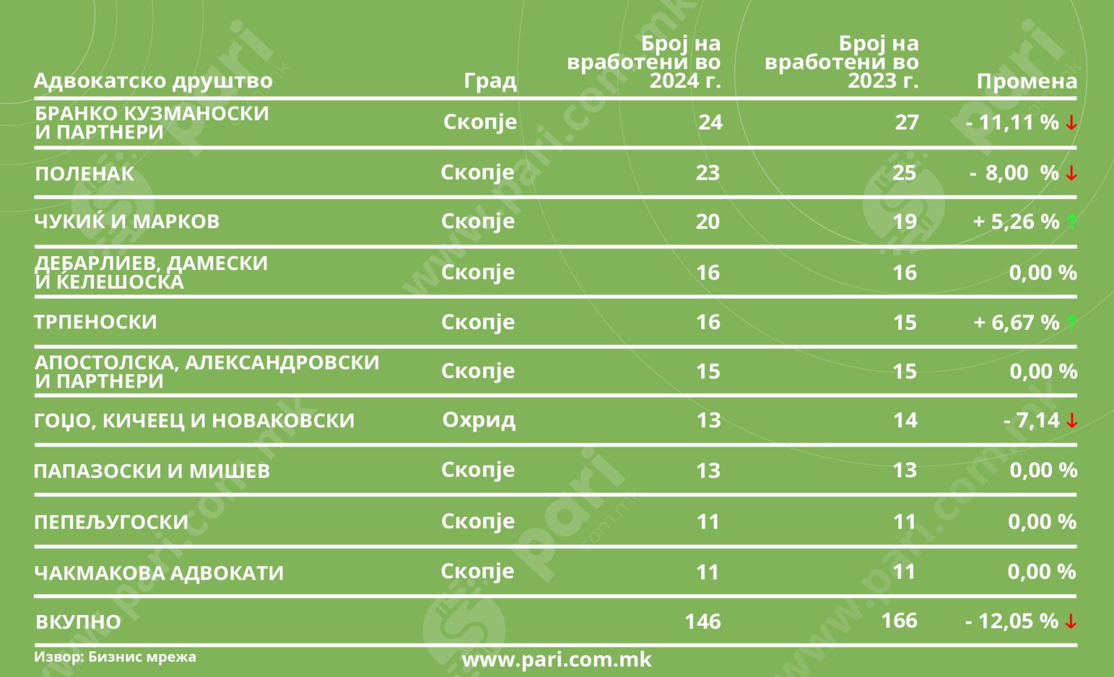 Порталот Пари во соработка со Бизнис Мрежа направи анализа на компаниите што се издвојуваат во три значајни сегменти. Проверете кои адвокатски друштва имаат свое место на листите за најголем приход, за највисок профит и за најголем работодавач.