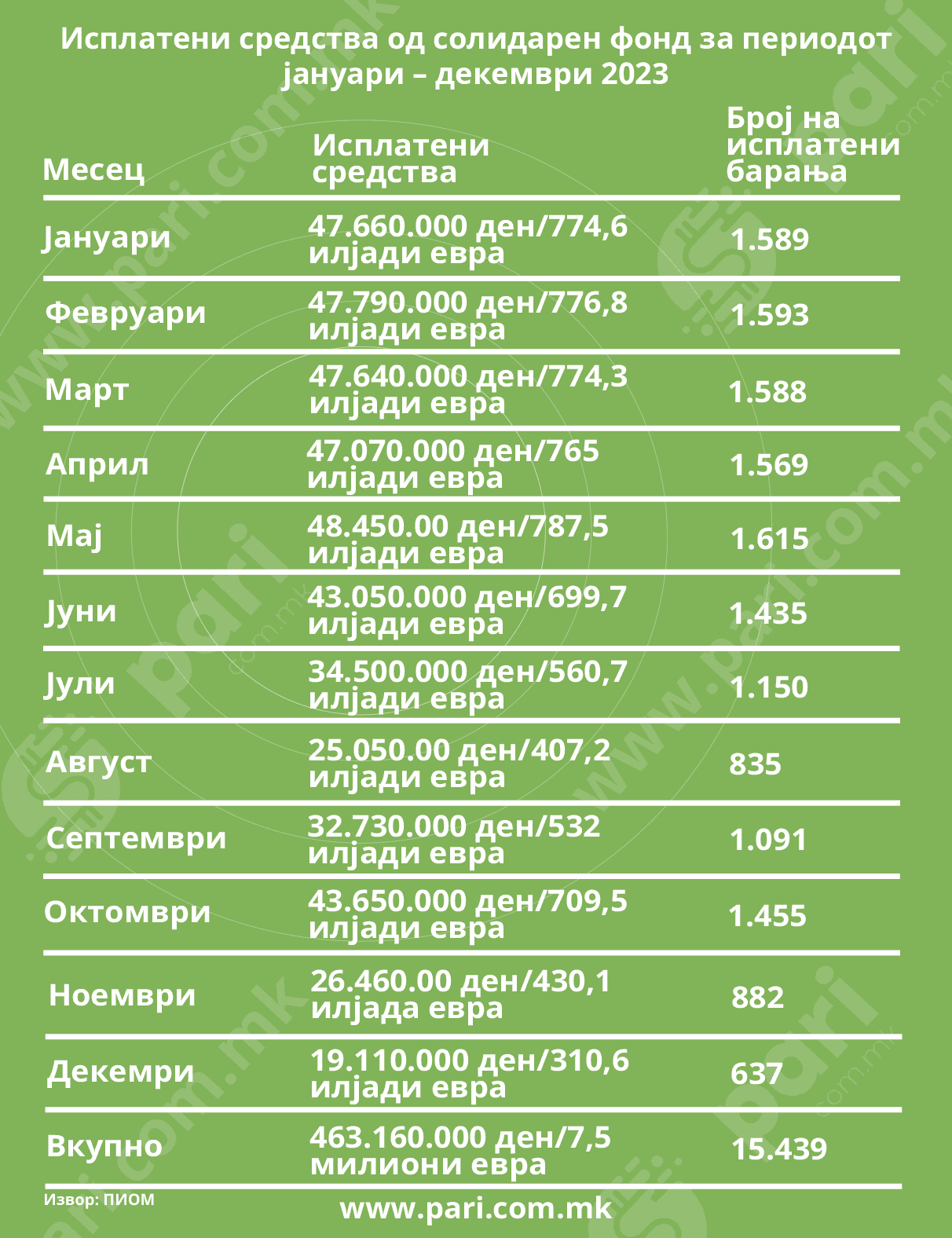 Забележливо е дека лани само во три месеци – август, ноември и декември, бројот на барањата за посмртнина е под илјада. Со што и месечните исплати се под 500 илјади евра.