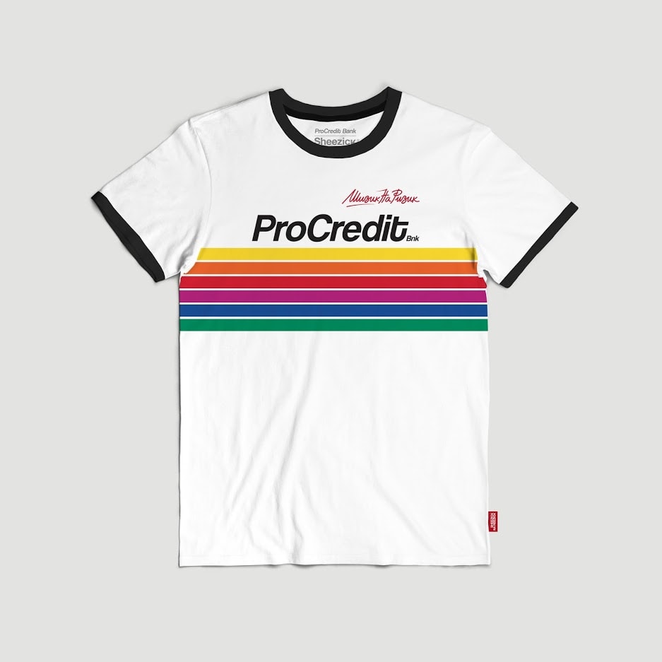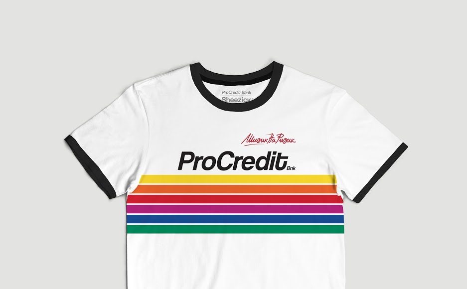 Имено, во соработка со македонскиот моден бренд “Шизик на ризик”, ПроKредит Банка на своите повеќе од 200 вработени им подари лимитирано издание на маица Шизик на ризик ексклузивно дизајнирана и произведена за таа намена.