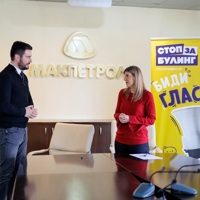 Во светски рамки, врсничкото насилство и понатаму е еден од најприсутните проблеми на младите, но истиот најчесто се премолчува. Ако се знае дека ова сфаќање е присутно наназад со децении, воопшто не изненадува што бројот на случаи не само што се намалува, туку и се зголемува. Македонија, иако е значително помала средина, не е имуна на врсничкото насилство, а оваа појава, за жал, и кај нас се третира како вообичаена фаза низ која што сите млади поминувале и во иднина ќе поминуваат. Нештата, сепак, и на глобално ниво се менуваат, веќе има земји со програми преку кои што се борат со булингот. Една од нашите цели е да поттикнеме отворен разговор за оваа тема, но сакаме и во пракса да им помогнеме на младите со тоа што ќе имаат пристап до потребните знаења – вели Марија Јосифовска-Спасовска, член на Управниот одбор и директор во „Макпетрол“.
