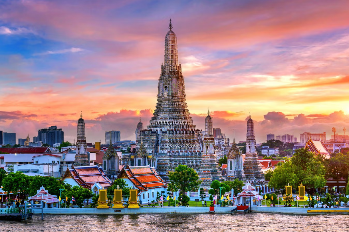 Бангкок е на врвот на листата, пречекувајќи повеќе од 32 милиони посетители во 2024 година. Градот се движи со полн наклон: тук-тукови што се движат низ сообраќајот, чамци со долга опашка што пловат по Чао Праја, тезги со храна што го полнат ноќниот воздух со лимета, чили и чад од јаглен. Монасите собираат милостина во зори пред храмовите позлатени со златни листови, додека над хаосот, баровите на покривите го протегаат хоризонтот во далечината. Сепак, ако влезете во каналите, темпото се забавува, откривајќи дрвени куќи и тивки пазари кои се чувствуваат непроменети со текот на времето. Бангкок ги привлекува луѓето поради своите контрасти, преполни и мирни, свети и френетични, сите содржани во еден немирен главен град.