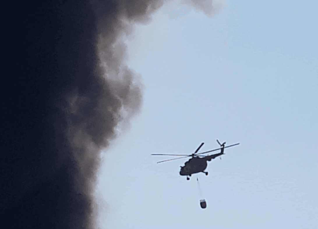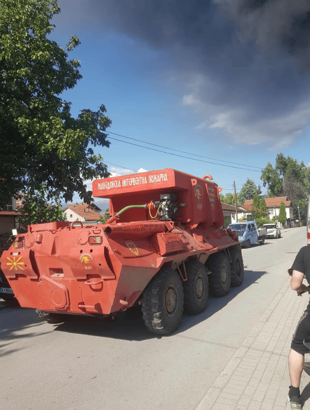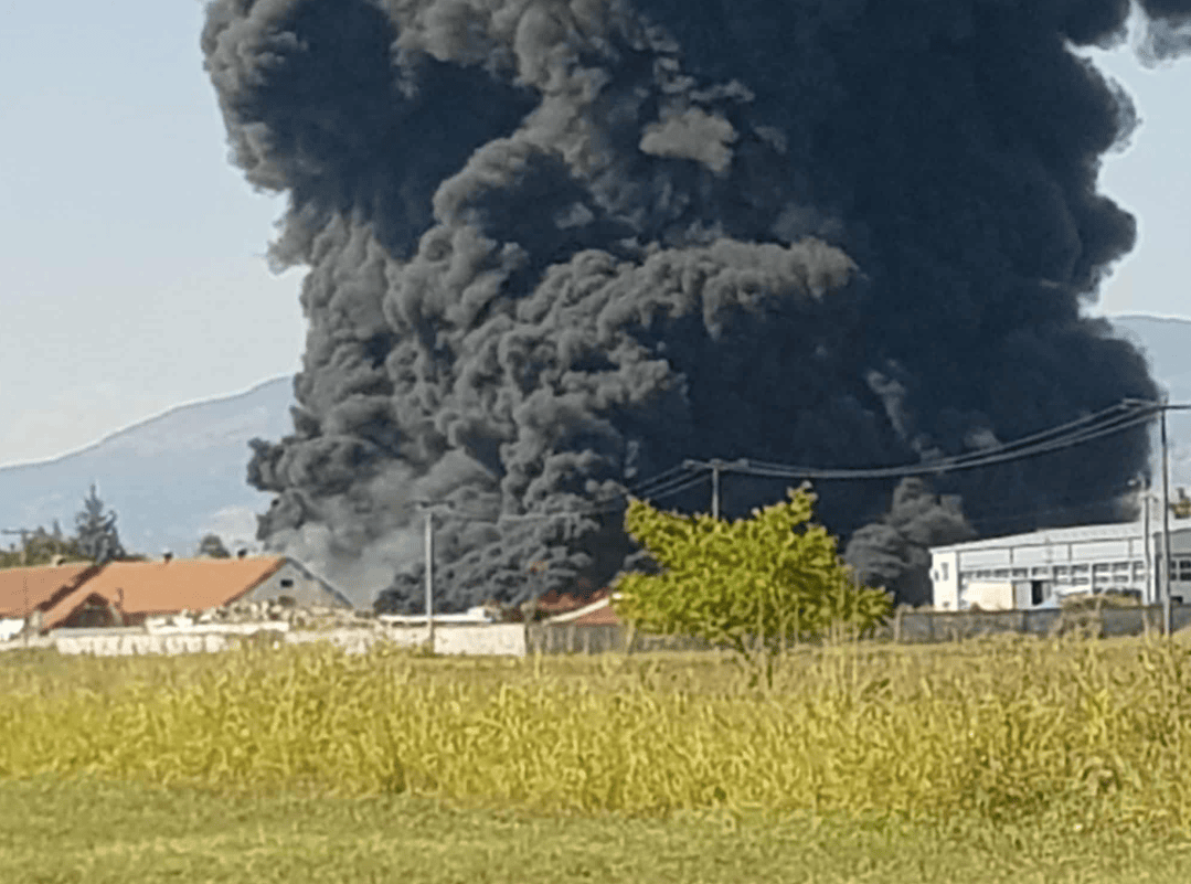 Со хермелини, хеликоптери и ер трактори, од копно и од воздух се гасне пожарот кој денес избувна пожар во дворот на компанијата Ф-Групација, каде е складиран електронски отпад и батерии. Гаснењето се одвива во мошне тешки услови поради густиот и непроѕирен црн чад, кој се гледа од сите делови на Скопје, кој ја попречува видливоста.