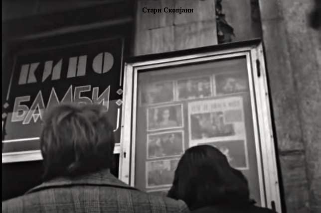 Киното било место на првиот состанок, на првата средба насамо. Се чекало да заврши журналот или кусометражниот филм, кои се прикажувале како претходница. Потоа, во темнината низ која се ширело зуењето на проекторот, првпат се испреплетувале прстите. На најинтересното, кога во кадарот биле главните глумци споени со филмски бакнеж, некаде во салата се случувал првиот допир на усните. Многумина имаат сеќавања што длабоко сентименатално ги врзуваат за старите скопски кина.