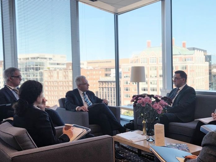 Гувернерот Славески се сретна со заменик-директорот на ММФ Бо Ли, директорот на Европскиот оддел во ММФ Алфред Камер, извршниот директор Јерон Клик, заменик-директорите Марникс ван Рај и Владислав Рашкован и шефот на Мисијата на ММФ за нашата земја Ник Гигинеишвили.