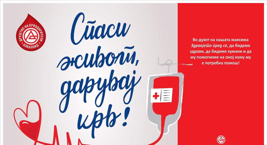 Со организирањето крводарителски акции компанијата уште еднаш ги истакна својата заложба за хумано однесување и посветеноста за унапредување на корпоративната култура и на општествената одговорност, а во сето тоа поддржана од ентузијазмот за хуманост на своите вработени. Токму тие се и најголемите амбасадори на сето она за што се залага „Алкалоид“ и се вистински пример за посветени вработени и за општествено одговорни луѓе.
