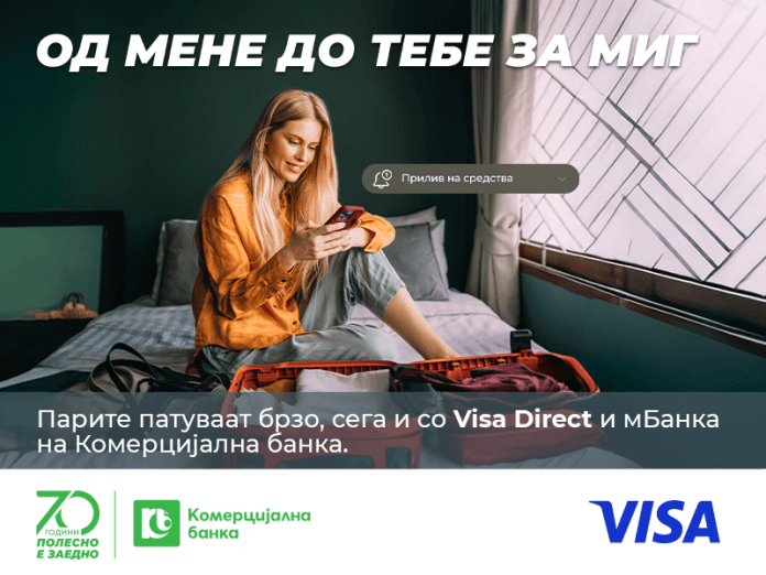 Корисниците на мобилната апликација мБанка на Комерцијална банка можат да испраќаат пари директно и веднаш од платежната сметка – на Visa дебитна картичка. Воведена е новата услуга Visa Direct.