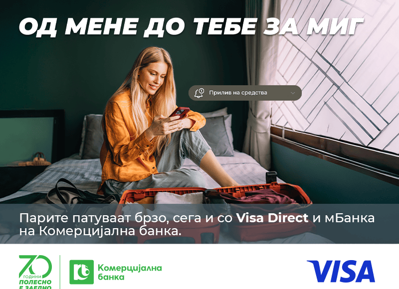Новата дигитална услуга веќе е достапна во мБанка на Комерцијална банка. Со Visa Debit од Комерцијална банка и со регистрирање за Visa Direct, клиентите добиваат можност за примање пари директно на нивната дебитна картичка – посочуваат од Комерцијална банка.
