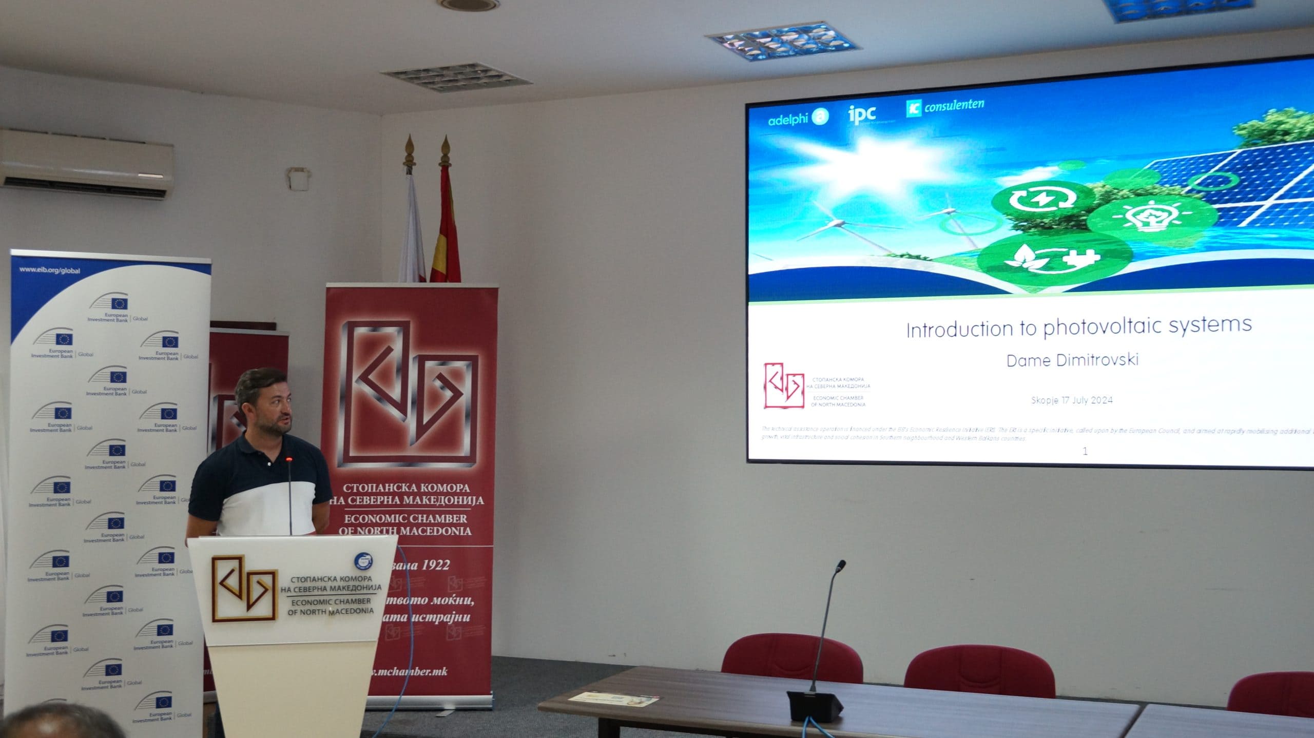 Настанот, чиј домаќин е Стопанската комора на Северна Македонија, во имплементација на одговорниот консултантски тим (adelphi, IPC и iC consulenten) и поддржан од кредитната линија EIB7, имаше за цел да ги поттикне локалните бизниси да се пренасочат кон обновливи извори на енергија и да го намалат нивниот јаглероден отпечаток. Учесниците се запознаа со најсовремените фотоволтаични и батериски технологии на македонскиот пазар, и разменија искуства со експертите за соларна енергија од локалните производители.