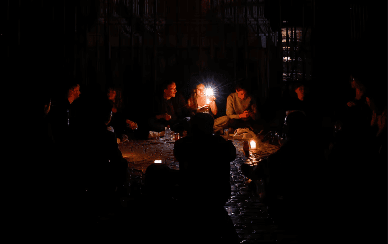 Многу Шпанци одлучија да земат половина ден одмор, собирајќи се на улиците и плоштадите за импровизирани средби или готвејќи оброци на светлина од свеќи дома.