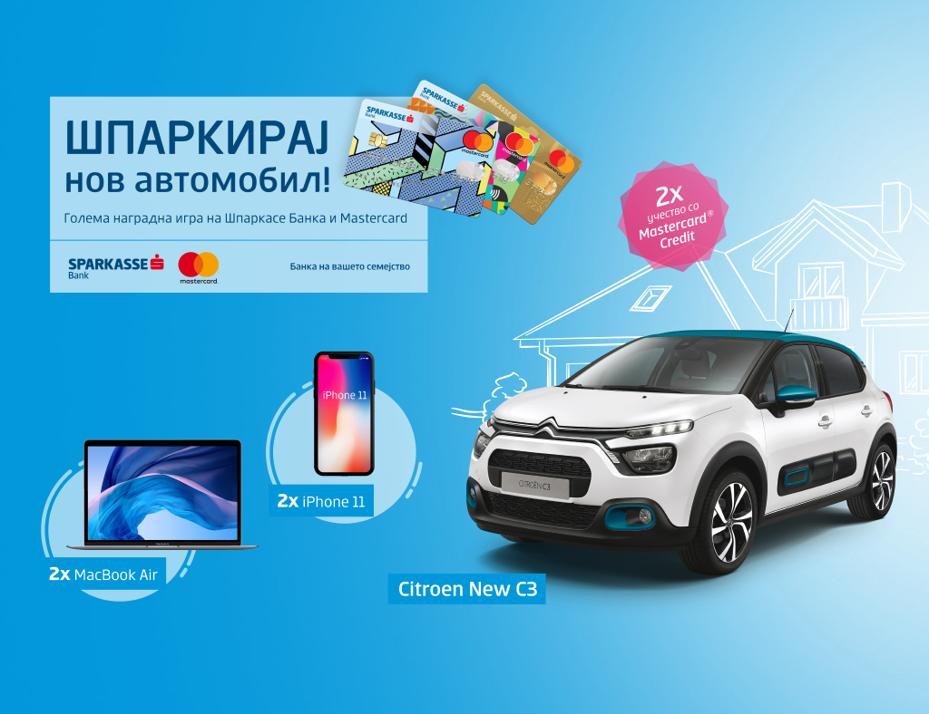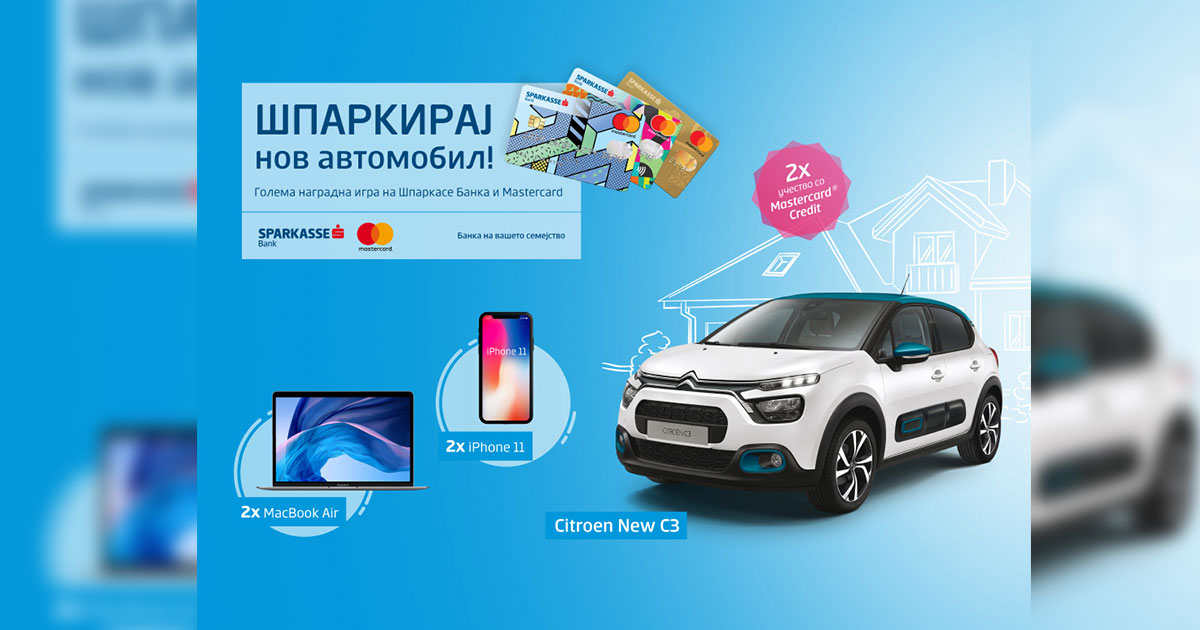 Од денес 15.09.2020 година започнува новата голема наградна игра „Шпаркирај нов автомобил“ наменета за корисниците на Mastercard картичките издадени од Шпаркасе Банка Македонија, кои со секоја трансакција на износ поголем или еднаков на 500,00 денари имаат можност да освојат некоја од вредните награди: