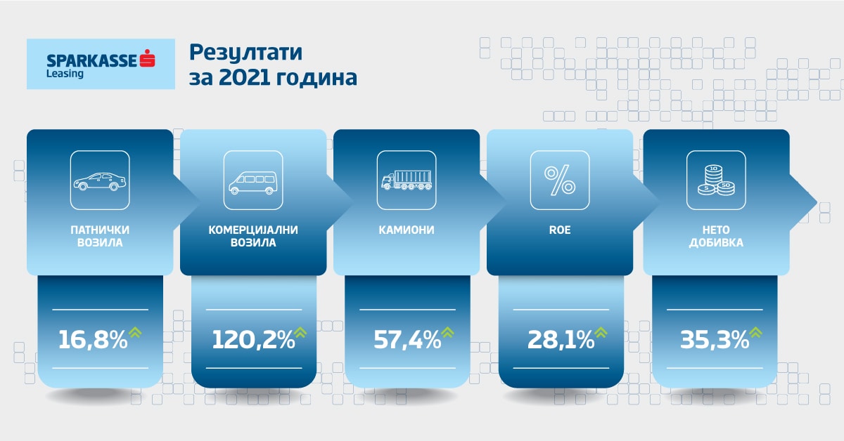 Врз основа на неревидираните финансиски извештаи за 2021 година Шпаркасе Лизинг Доо Скопје во текот на 2021 година оствари раст во сите сегменти на работењето и тоа: