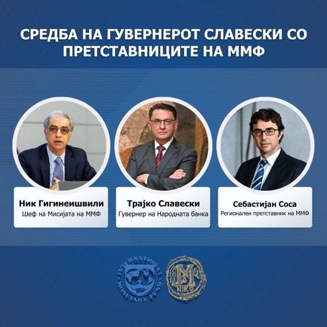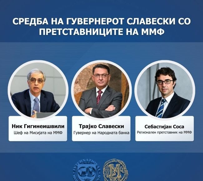 Оваа порака беше упатена за време на првата официјална средба на гувернерот на Народната банка, д-р Трајко Славески, со регионалниот претставник на ММФ, Себастијан Соса и новиот шеф на Мисијата на ММФ за нашата земја, Ник Гигинеишвили. Средбата се одржа во духот на продолжувањето на долгогодишната и конструктивна соработка, во интерес на одржувањето стабилен и отпорен економски систем.