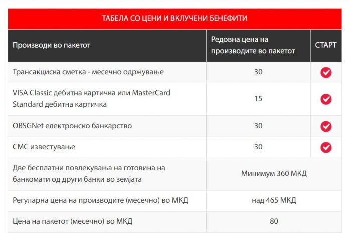 * За активација на Старт пакетот обратете се во најблиската експозитура на Охридска банка.