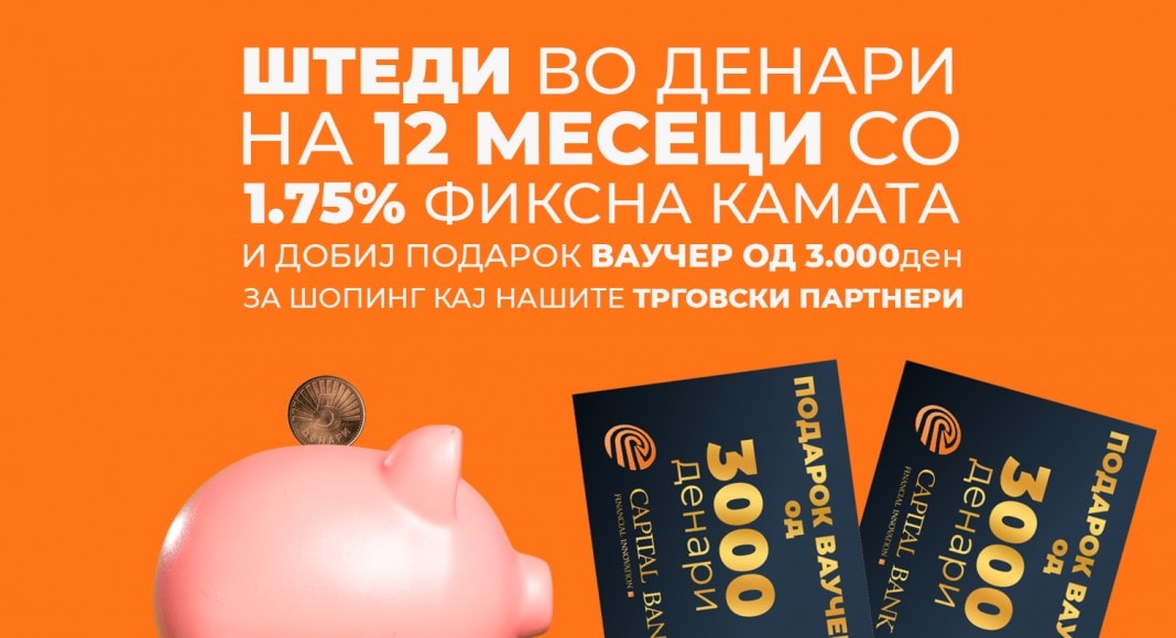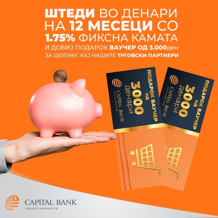 Капитал Банка АД Скопје, од неодамна промовираше и ОНЛАЈН отворање на депозит, без физичко доаѓање во банката, односно од Вашиот дом, работно место, компјутер или паметен телефон. Се што треба да направите е да се јавите во банката и да побарате отворање на депозит онлајн и да ги имате средствата предвидени за депозит на било која друга сметка во било која банка или штедилница во РСМ. Оваа услуга го намалува и ризикот од ширење на вирусот Covid-19, бидејќи целиот процес се одвива дигитално, а ваучерот како дел од новата промоција ќе Ви го испратиме по пошта.