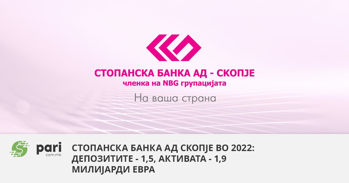 Стопанска банка АД Скопје во 2022: Депозитите – 1,5, активата – 1,9 милијарди евра