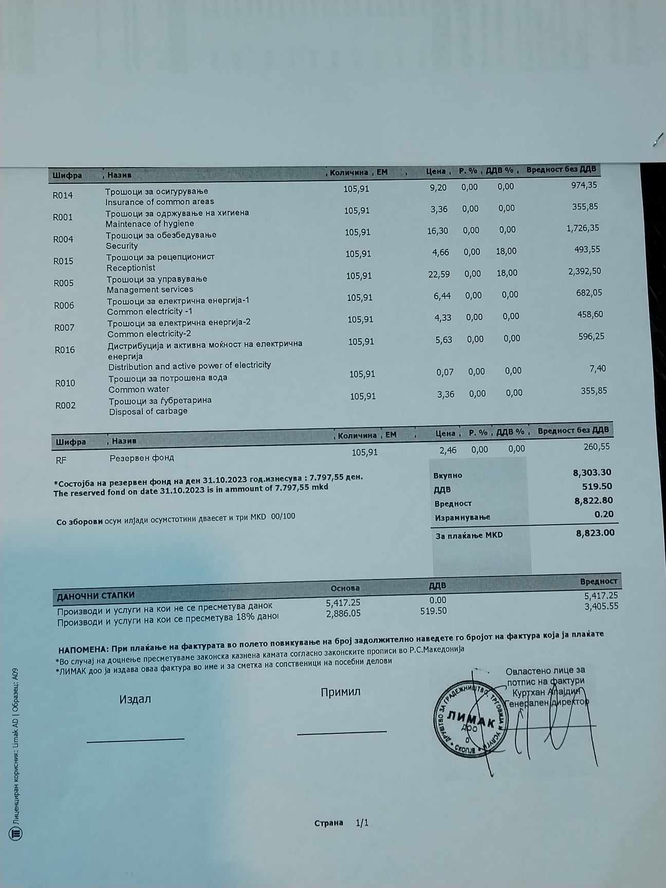 Во септември биле известени дека одржувањето на зградата ќе почне да се наплатува. Тогаш дознале дека управувањето со зградата, осигурувањето, чистењето… ќе чинат едно евро по квадрат, плус варијабилните трошоци како струја, вода – 0,3 евра и за резервен фонд уште 4 евро центи. Тоа се 1,34 евра, но додаваат, во иднина ќе има уште трошоци, за одржување на лифтовите, техничко одржување, чистење и одржување на гаражите, за што плаќаат сите станари, без оглед дали купиле или не гаража, па чистење на фасадата… „Кога сето тоа ќе се вклучи, одржувањето сигурно ќе дојде до над две евра за квадрат“, заклучуваат и негодуваат, бидејќи им се бараат пари за одржување, а во објектот се уште владее хаос. Затоа, добар дел од нив решиле да не ги плаќаат сметките за одржување, се додека не се средат работите, за што доставиле и приговор. Така и се нашле под притисок, или платете или нема поправки, па дури им било речено дека на врата ќе им дојдат извршители.