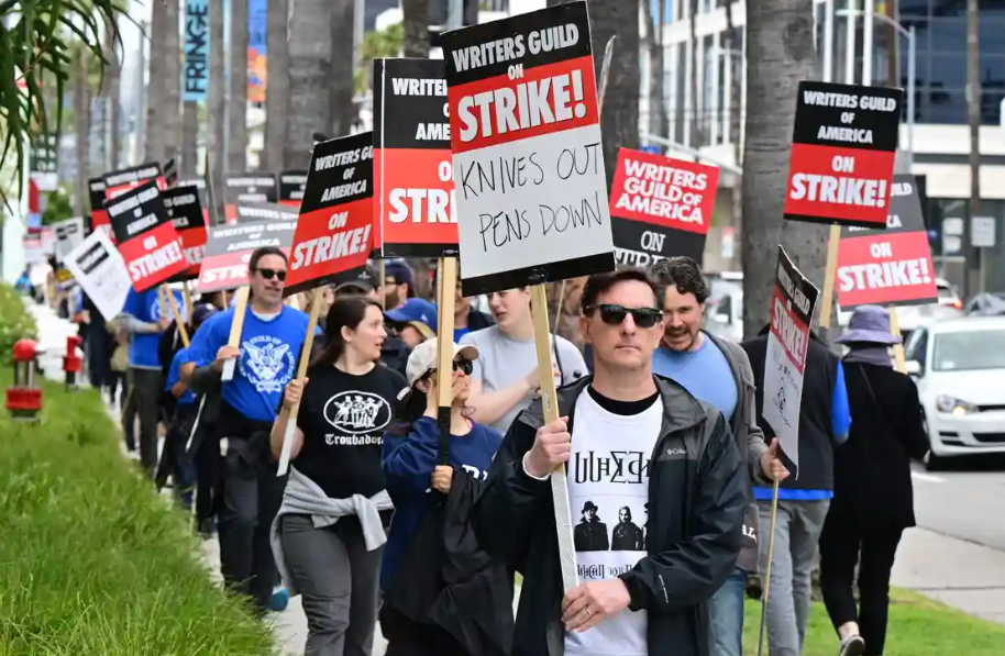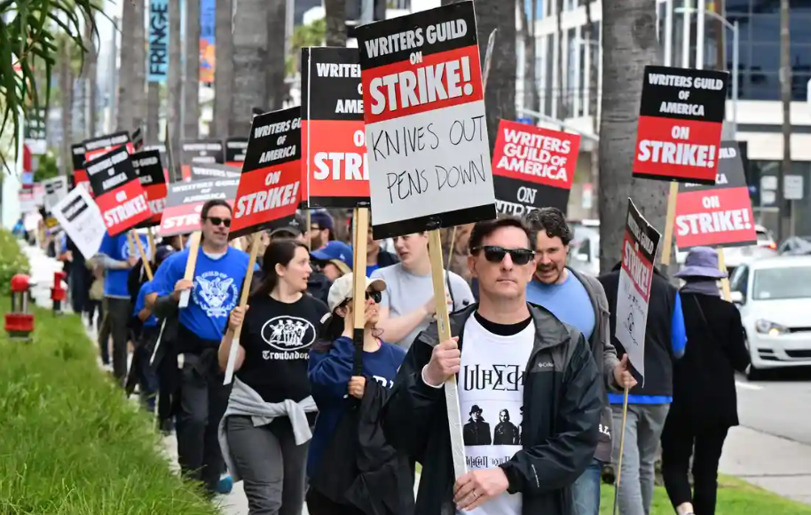 Повеќе од 11.000 филмски и телевизиски писатели, кои велат дека нивниот надомест не се совпаѓа со приходите генерирани во ерата на стриминг, штрајкуваат за прв пат од 2007-2008 година. Тој прекин на работата траеше 100 дена и го наруши производството на неколку серии и филмови. Ова ќе има значително влијание врз доцните емисии, каде што писателите имаат задача да прават навремени и актуелни шеги. Продукцијата на дневните емисии, вклучувајќи ги „The Tonight Show Starring Jimmy Fallon“, „The Late Show with Stephen Colbert“ и „Late Night with Seth Meyers“, се откажани за неделава.