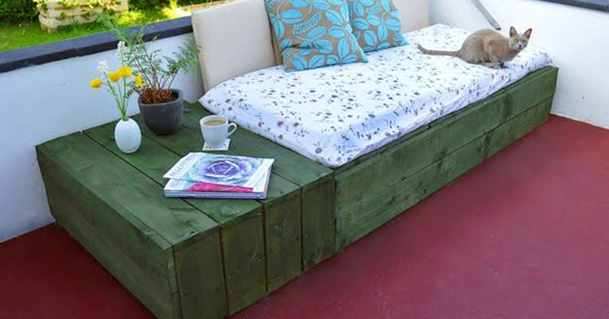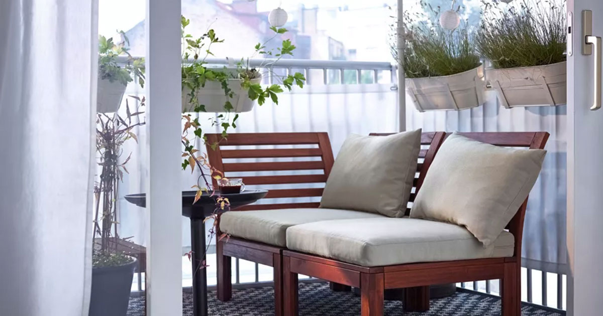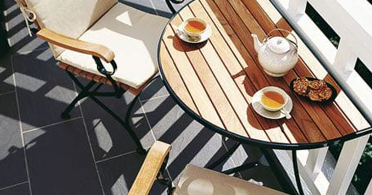 Немате доволно простор на терасата за маса и столчињa? Спојте го просторот за седење и масичката во едно, или пак преполовете ја масичката и закачете ја за оградата! На овој начин ќе добиете сѐ што ви треба.