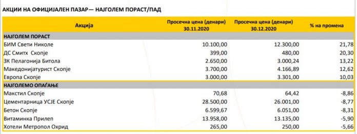 Прочитај и: Македонска берза го објави месечниот статистички билтен за декември 2020