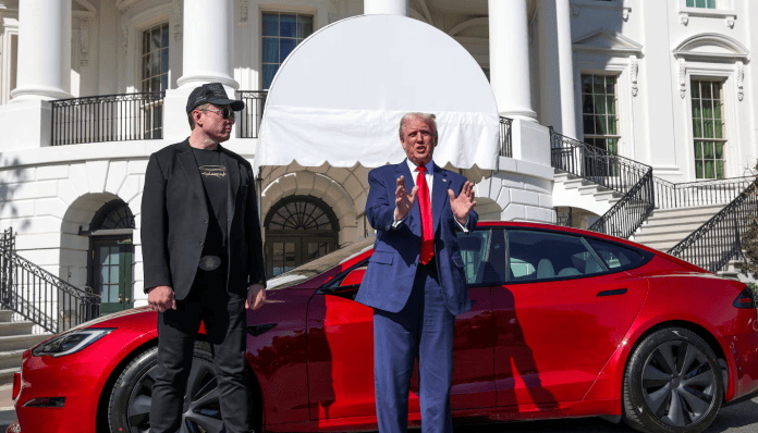 На почетокот на овој месец, Трамп го претвори јужниот тревник на Белата куќа во привремен изложбен салон на Тесла. Компанијата испорача пет од своите електрични возила таму за претседателот да ги прегледа, откако тој изјави, во објава на Truth Social, дека ќе купи Tesla за да покаже поддршка за Маск и бизнисот. Маск стоеше покрај него додека Трамп ги нарече возилата „прекрасни“ и го пофали неортодоксниот дизајн на аголниот, челичен „Tesla Cybertruck“.