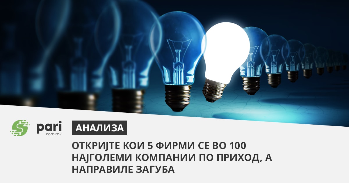 Иако се во друштото на 100 НАЈГОЛЕМИ НАЈПРИХОДНИ КОМПАНИИ во 2021 година, со дебел минус минатата година ја завршиле: ЕВН хоум, ЕВН Електроснабдување, Енерџи диливери солушн, Тера енерџи трејдинг и Феникс фарма. Зедничко на сите нив, со исклучок на Феникс фарма, е што тоа се компании од енергетска дејност. Заедничка загуба на овие 5 компании е дури 20,3 милиони евра, а само на четирите енергетските компании е 20,2 милиони евра.
