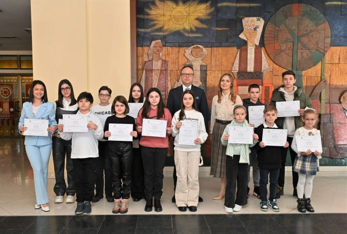 Гувернерката Анита Ангеловска-Бежоска и заменик-министерот за финансии Филип Николоски ги доделија наградите освоени од учениците во рамките на Конкурсот за избор на најдобри ликовни и литературни творби по повод Светскиот ден на штедењето ‒ 31 октомври.
