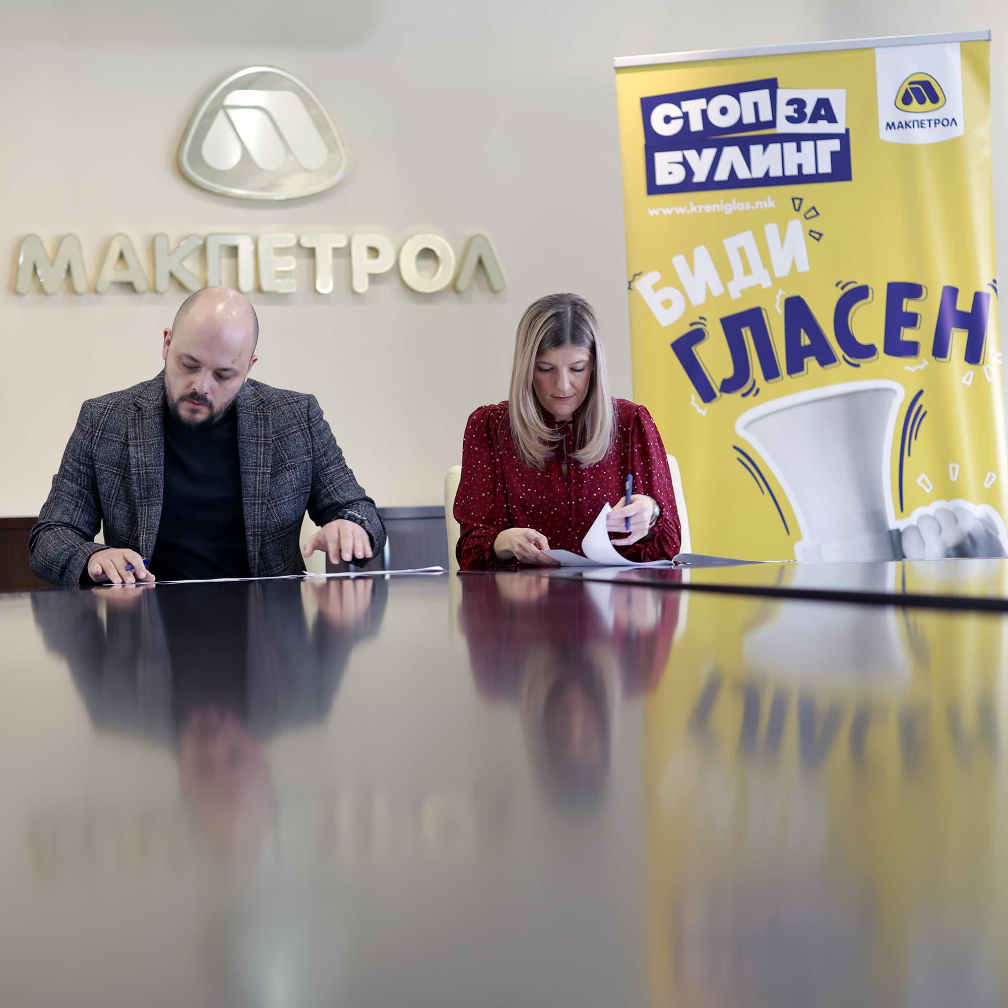Децата во Македонија уште од најрана возраст се соочени со булингот, односно врсничкото насилство. Проблемот е комплексен, а неговото значење и влијание е огромно врз развојот на секое општество. „Макпетрол“ ја отпочна едукативната кампања „Крени глас против врсничкото насилство“ со цел да го крене интересот на јавноста за оваа појава, но и да се најдат начини и пристапи за решенија. Преку активностите компанијата остварува една од своите стратешки цели – општествената одговорност.