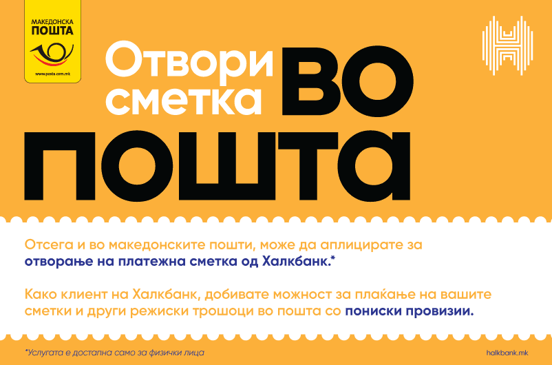 Имено, во која било од 327 активни поштенски единици на Пошта, што располагаат со 476 шалтерски места, можат да се реализираат сите безготовински плаќања (за клиенти на Халкбанк АД Скопје) и плаќања во готово, кои вклучуваат и плаќање сметки за режиски трошоци по најконкурентни цени на пазарот во однос на цените на домашните банки за готовински плаќања. Но, може да се добие и пристап до други банкарски услуги што ги нуди Халкбанк. Имено, во сите поштенски единици, жителите можат да поднесат барање за отворање на сметка во Халкбанк и со тоа да станат клиенти на банката, што пак носи можност за безготовинското плаќање на сметки и други режиски трошоци преку сопствената сметка во банката, со пониски провизии.