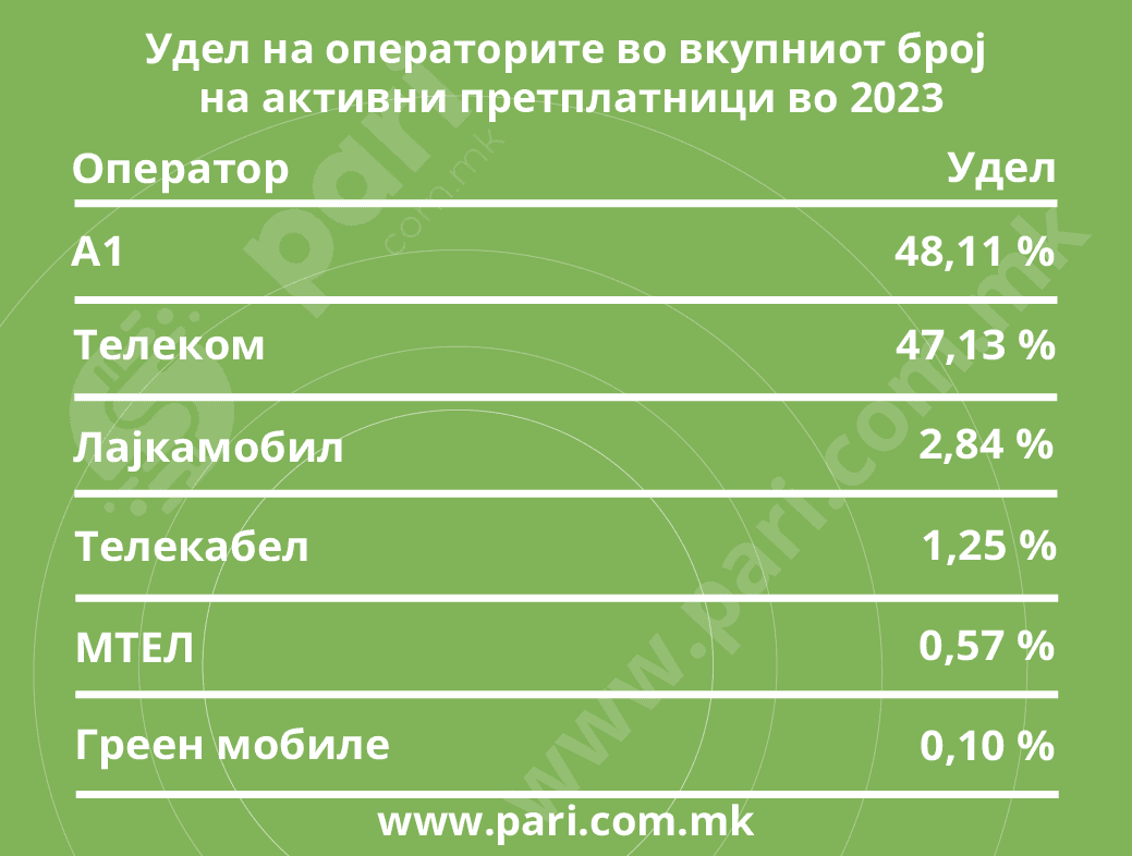 КАКОВ ПАЗАРЕН УДЕЛ ИМААТ ТЕЛЕКОМУНИКАЦИСКИТЕ ОПЕРАТОРИ?