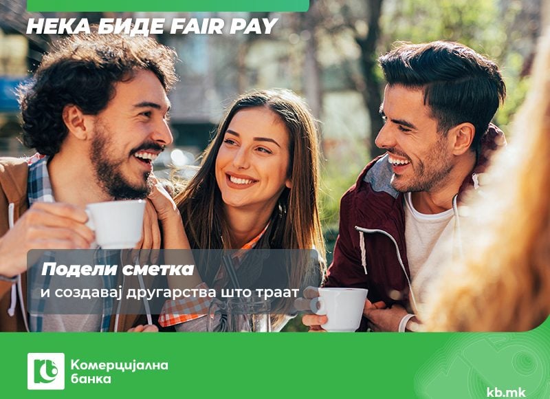 Кога друштвото оди на вечера нека биде „fair pay“ со новата услуга на Комерцијална банка – „Подели сметка“. Мобилната апликација мБанка на Комерцијална банка е збогатена со уште една функционалност која ти овозможува делење сметка согласно желбите и потребите.