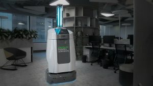 Роботот е автономен и безбеден, може да се самодезинфицира во просторијата и автоматски да прекине дезинфекцијата кога некое лице ќе влезе во собата.