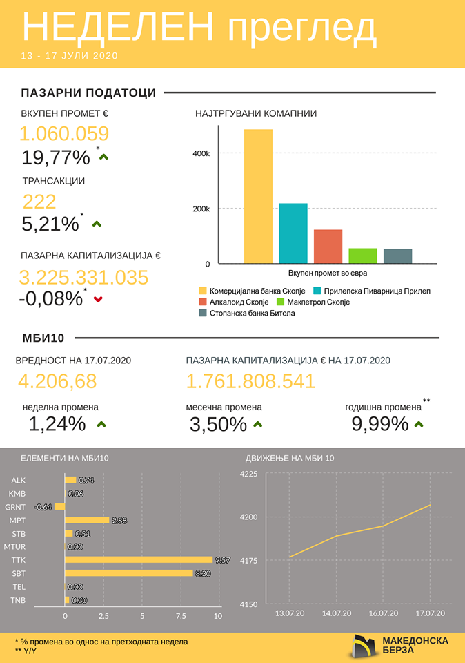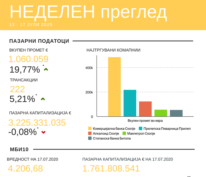 Еве како изгледаше неделниот преглед со податоци од тргувањето за период од 13-17.07.2020: