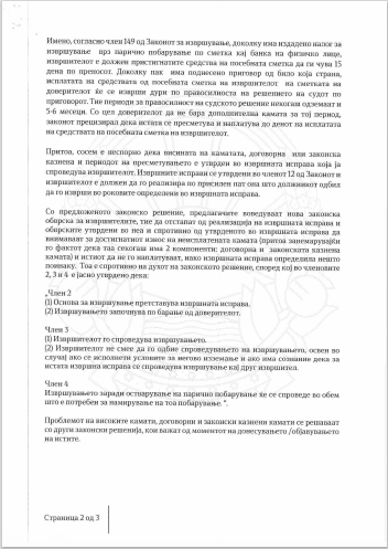 Во продолжение, целото мислење на Владата за измените на Законот за извршување.