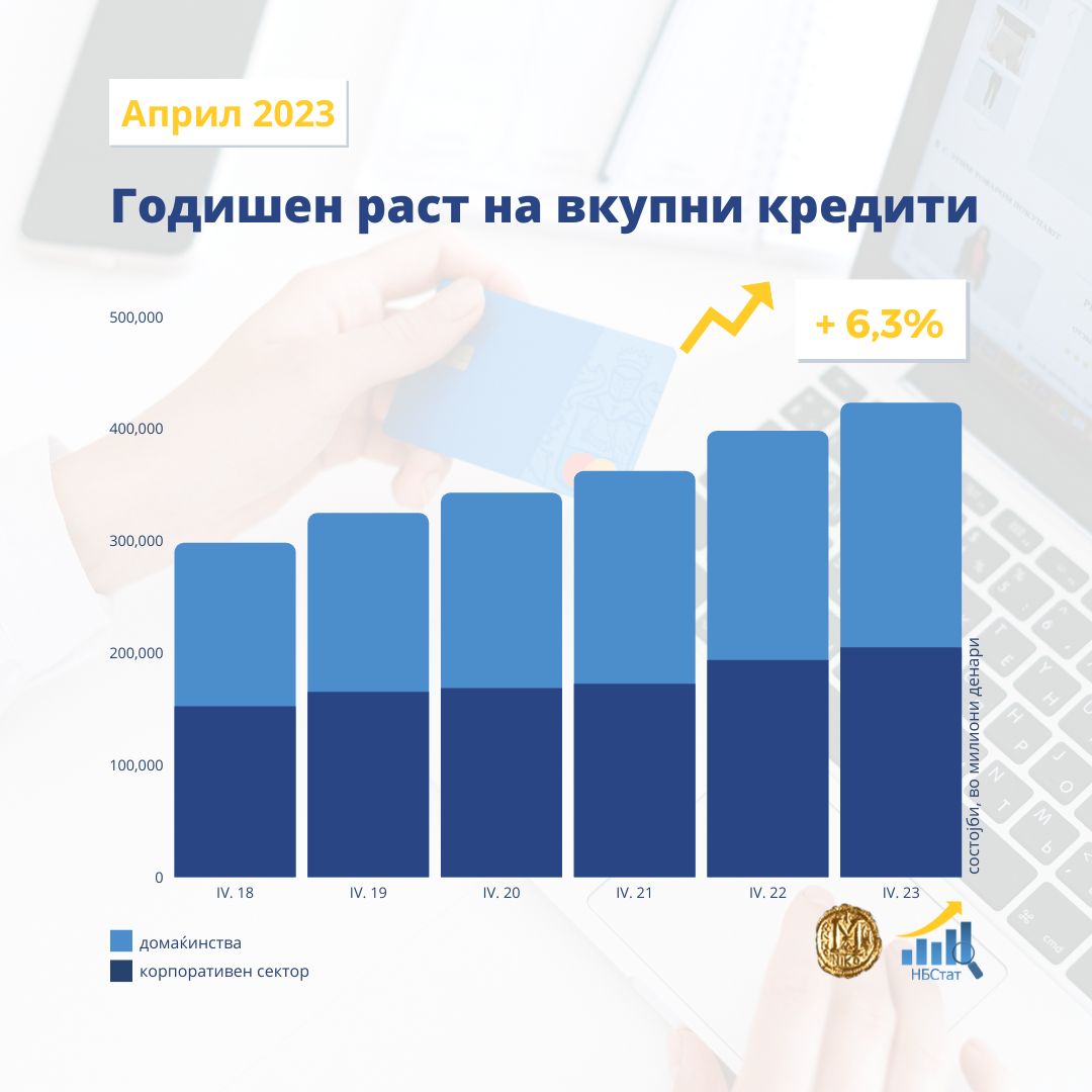 Што се однесува до кредитирањето, априлското зголемување е за 0,6 насто, а и тука поголема е заслугата на компаниите. Но, на годишно ниво, во растот од 6,3 проценти позначаен е уделот на задолжувањето од страна на граѓаните.
