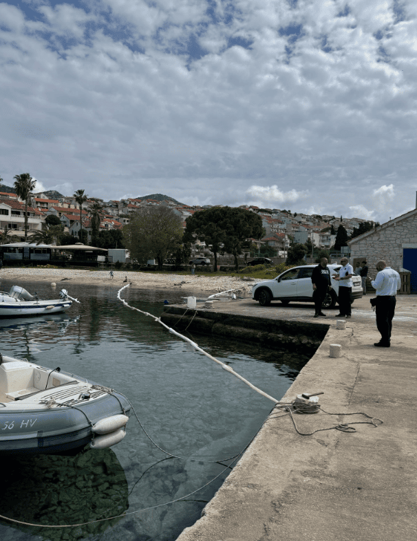 Наутичкиот центар Хвар инсталираше привремена заштитна брана. Во моментов нема видливо истекување на нафта во морето, но нафтената дамка што ја носат струите веќе се проширила надвор од пристаништето Крижна.