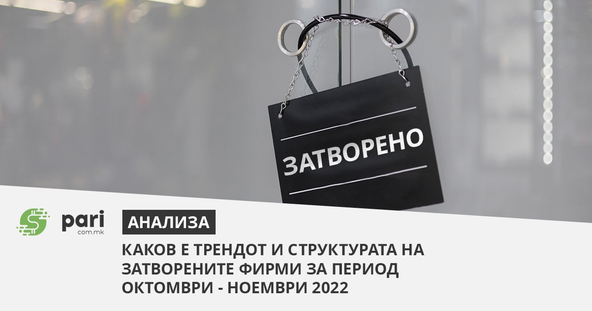 Ако затворањето на компаниите е сликовит начин за покажување на деловниот амбиент, тогаш овие податоци покажуваат влошување на состојбата во октомври годинава, кога се затвориле 339 правни субјекти, за разлика од истиот месец лани, кога се затвориле 264. Но, веќе во ноември има речиси ист број на згаснати компании како и ланскиот ноември. Имено, претходниов месец биле затворени 368 компании, а ланскиот ноември клуч на врата ставиле 370 компании.