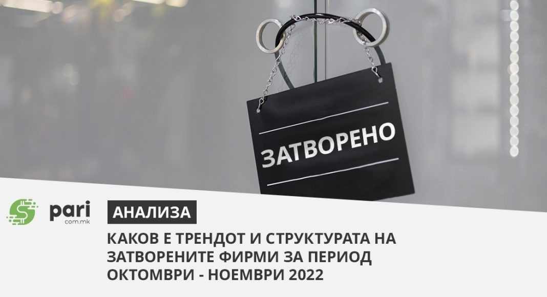 Ако затворањето на компаниите е сликовит начин за покажување на деловниот амбиент, тогаш овие податоци покажуваат влошување на состојбата во октомври годинава, кога се затвориле 339 правни субјекти, за разлика од истиот месец лани, кога се затвориле 264. Но, веќе во ноември има речиси ист број на згаснати компании како и ланскиот ноември. Имено, претходниов месец биле затворени 368 компании, а ланскиот ноември клуч на врата ставиле 370 компании.