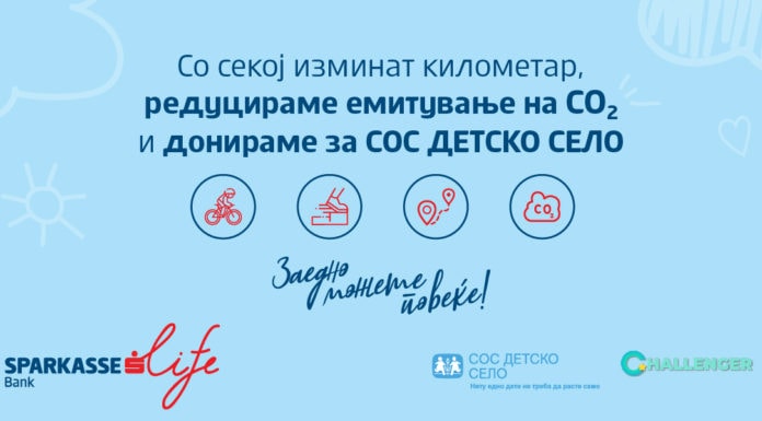 Со големо задоволство, најавуваме eден посебен и важен CSR проект на „СОС Детско село“ и Шпаркасе Банка, овозможено и поддржано од „Challenger“.Вработените во Шпаркасе Банка во период од 05.10.2021-31.11.2021 со секој ЕКО километар поминат во пешачење, возење велосипед, планинарење, ќе овозможат да се собере поставената цел за донација кон „СОС Детско село“ во износ од 300.000 денари. Преку повикот за остварување на заеднички импакт од сите вработени Шпаркасе Банка не само што ќе ја реализира донацијата кон „СОС Детско село“, туку и ќе ги поттикне и мотивира своите вработени за поголема физичка активност и мерење на изминати ЕКО километри во секојдневното движење.