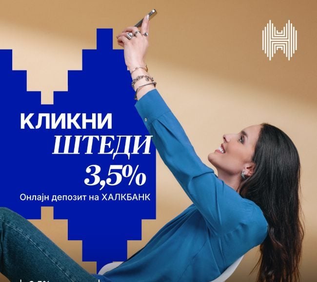 Овој производ е идеален за сите кои сакаат брзина, ефикасност и потполна контрола од дома. Онлајн депозитот може да се отвори преку електронското банкарство на Халкбанк, без посета на филијала. Со минимален влог од само 3.000 денари, добивате можност за фиксна каматна стапка и можност за избор на рок на орочување (од 3 до 36 месеци). Каматата се пресметува на крајот од рокот, а сè е целосно безбедно со електронски потпис. Овој депозит штеди за вас – додека вие се посветувате на тековните приоритети.