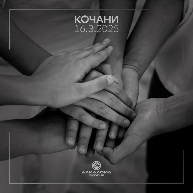 „Во името на нашиот колектив, изразуваме длабоко сочувство до семејствата на настраданите и искрено жалење за ненадоместливите загуби. Истовремено, упатуваме искрени желби за брзо закрепнување на повредените кои се лекуваат во земјава и во странство“, велат од фармацевтската компанија, од каде што ги поздравуваат напорите за помош на сите поединци и организации, кои со сопствени ресурси и несебични ангажмани придонеле и придонесуваат за поефикасно справување со трагичните последици. „Понекогаш, и мал гест или убав збор за утеха и поддршка може да направи голема разлика“, посочуваат од „Алкалоид“.