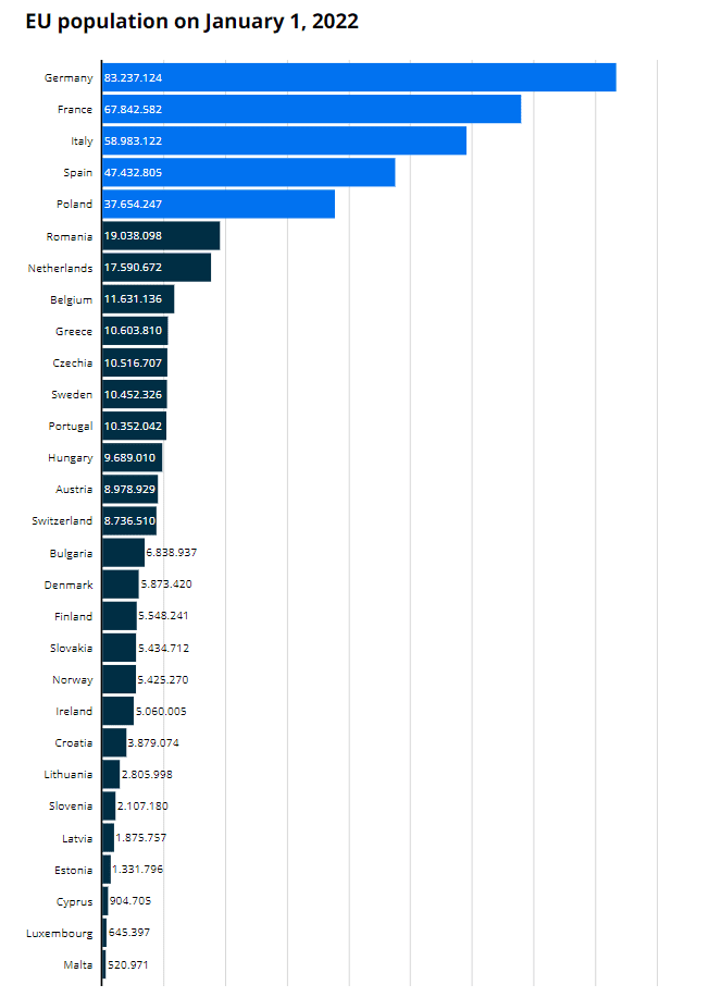 НАСЕЛЕНИЕТО НА ЕУ НА 1 ЈАНУАРИ 2022