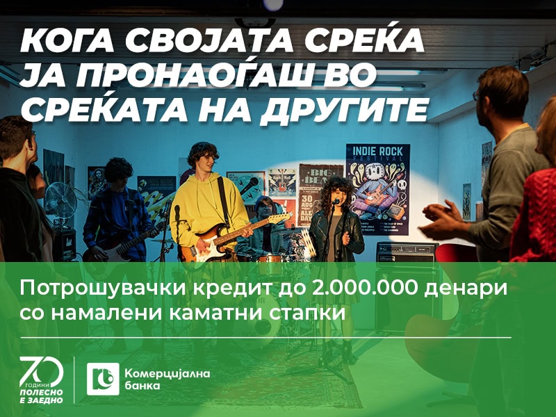 Тимот на Комерцијална банка е тука за да ти помогне да го претвориш секој план во среќна приказна. Со новото финансиско решение овозможуваме твоите желби и планови да станат реалност побрзо, полесно и со јасна финансиска предвидливост. И, што е уште поважно, без да правиш компромиси за важните работи.