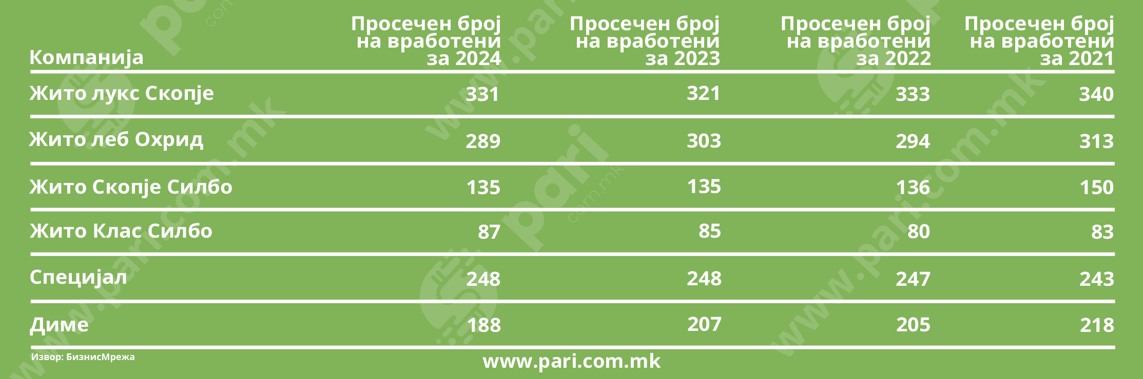 Жито Лукс е најголем по приход и број на вработени, истовремено исплаќа и највисока просечна плата – 631 евра, што е зголемување за 11% во однос на 2023 година. Воедно, оваа компанија забележала и највисоко подобрување на добивката по години.