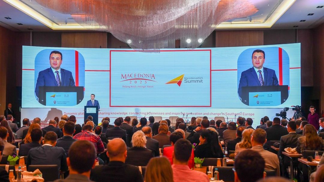 Претседателот на Владата на Република Северна Македонија Зоран Заев, во присуство на претседателот на државата Стево Пендаровски, амбасадорката на САД Кејт Брнз и голем број на амбасадори, инвеститори и гости, се обрати на утринската сесија на осмото по ред издание на Самитот на Македонија 2025.