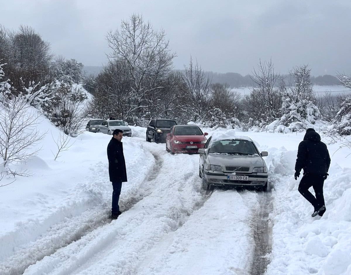 „ЗАГЛАВЕНИ СМЕ ВО СНЕГОТ И СО ГОЛИ РАЦЕ ГИ ТУРКАМЕ ВОЗИЛАТА“: Конвој возила со деца и трудници се уште чека помош од надлежните кај Леуново