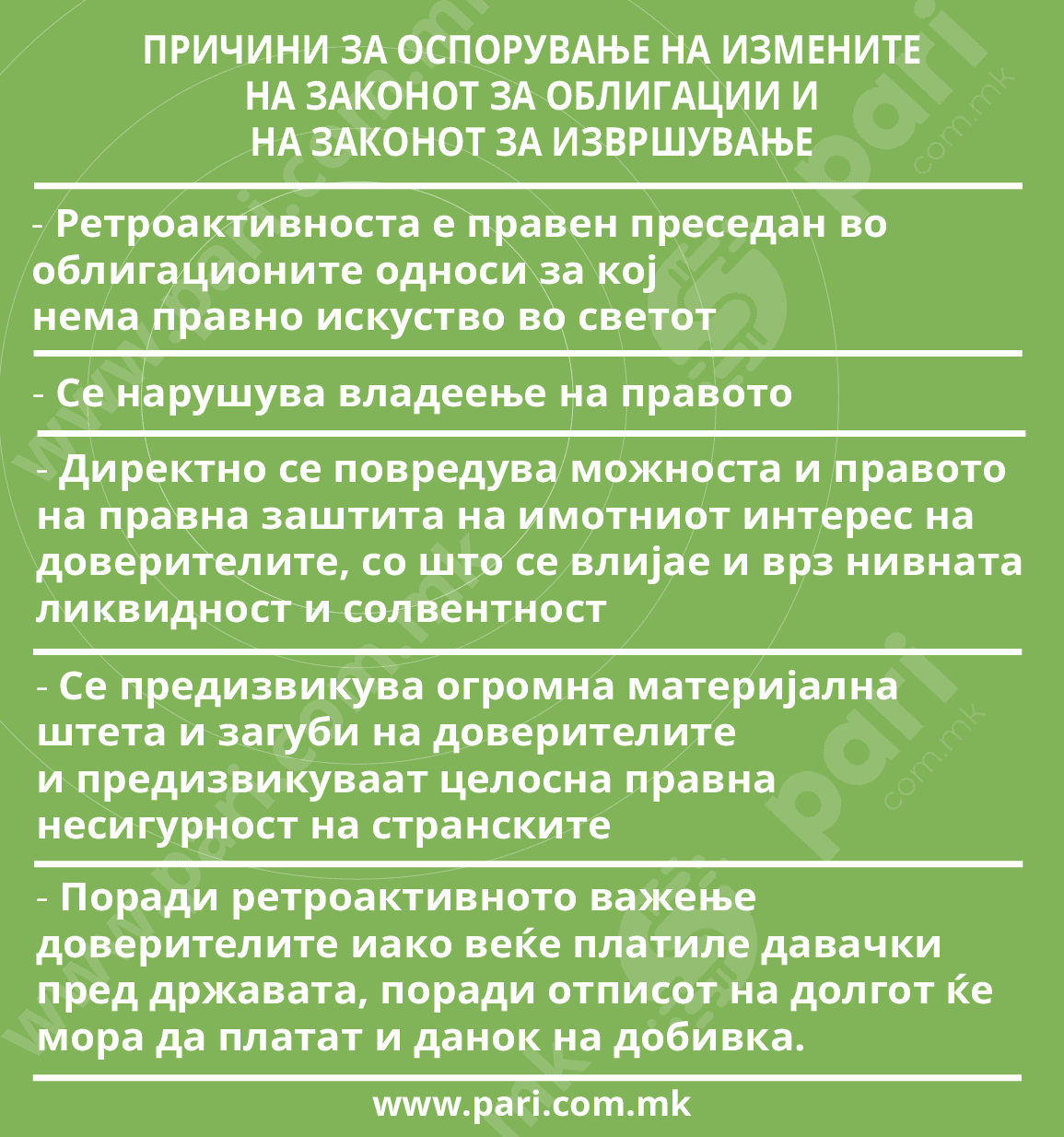Инаку, како што веќе објави www.pari.com.mk, [https://stage.pari.com.mk/vladata-na-sdsm-i-dui-protiv-pratenicite-od-sdsm-i-dui/] против измените на Законот за извршување беше и Владата. Таа на седницата на 04.07.2023 година донесе мислење дека измените на Законот за извршување сериозно го нарушуваат концептот на владеење на правото во државата и затоа Собранието не би требало да ги усвои.
