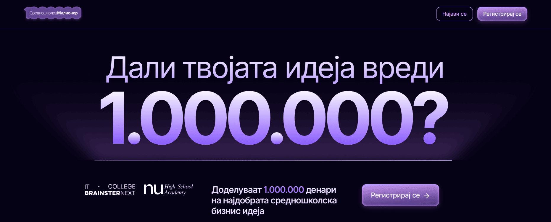 „СРЕДНОШКОЛЕЦ МИЛИОНЕР“ е вистинска можност младите да ги развијат своите идеи, да учат од искусни ментори, да стекнат контакти и да се подготват за иднината како лидери и претприемачи.