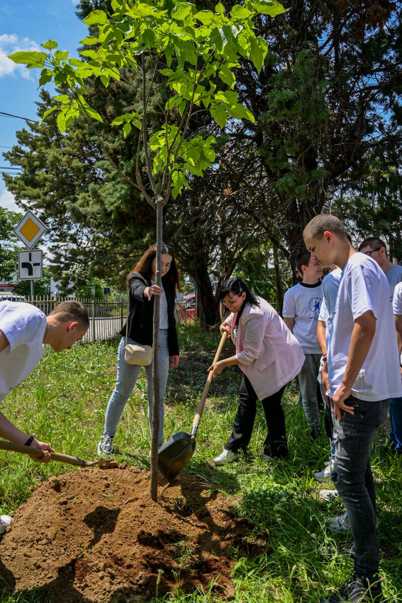 Денес, во Велес заедно со учениците од „Коле Неделковски“ засадија 15 средно созреани садници кои имаат за цел да го раззеленат училишниот двор, но и да ги потсетуваат учениците за предностите од навременото вложување во поубава иднина за себе и за околината.