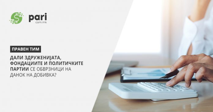 Здруженијата на граѓани и фондации, како и нивните сојузи и други облици на здружување или поврзување, стопанската интересна заедница, политичките партии, верските заедници, религиозните групи, Црвениот крст на Република Северна Македонија, здруженија на странци, странските и меѓународните невладини организации, хуманитарните организации и здруженија, синдикатите, коморите и други правни лица основани со посебни прописи од кои произлегува дека се непрофитни организации, не се обврзници за данок на добивка, освен доколку истите вршат и остваруваат приходи од вршење стопанска дејност во рамките на нивното непрофитно делување, во која ситуација стануваат обврзници за пресметување и плаќање данок на вкупен приход, доколку вкупниот годишен приход од стопанската дејност е поголем од 1.000.000 денари.
